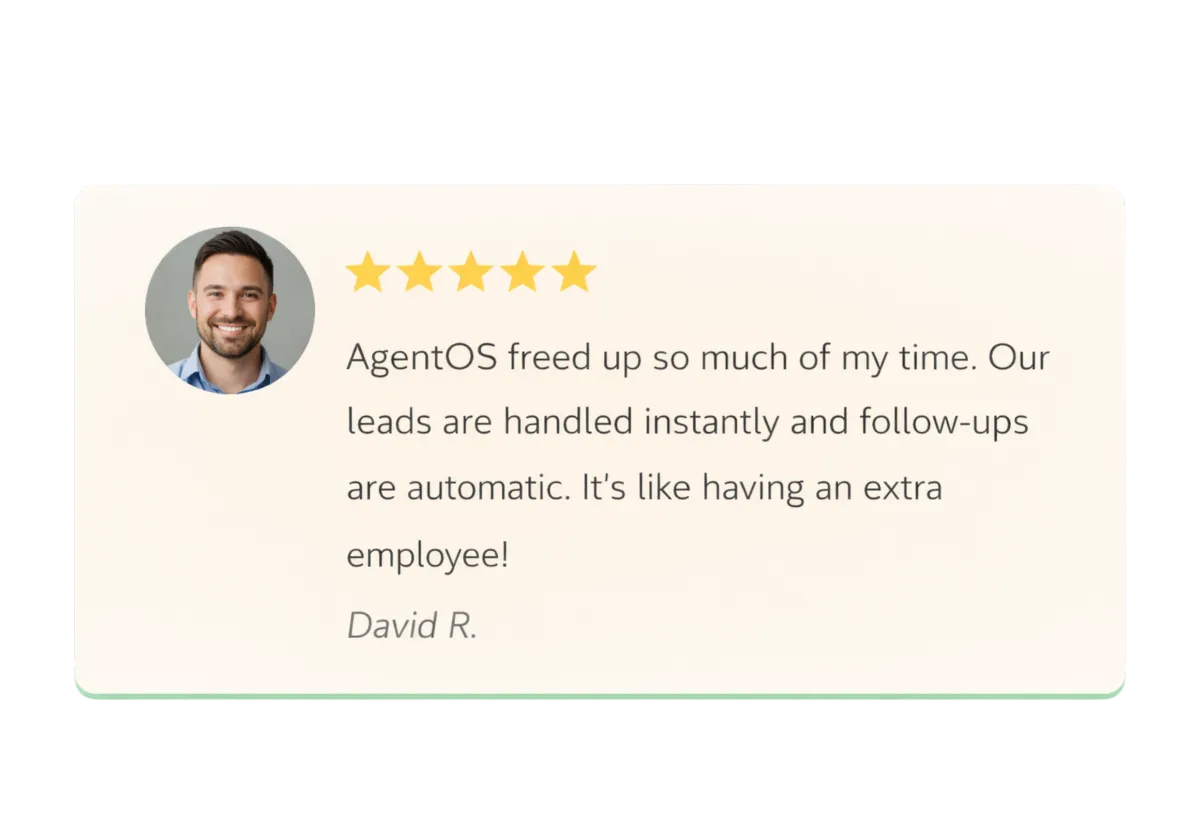 We don’t just deliver systems — we deliver real results. From faster responses and conversion-focused design to hands-on guidance, businesses across industries rely on AgentOS to drive growth. But don’t take our word for it — see what our customers are saying.